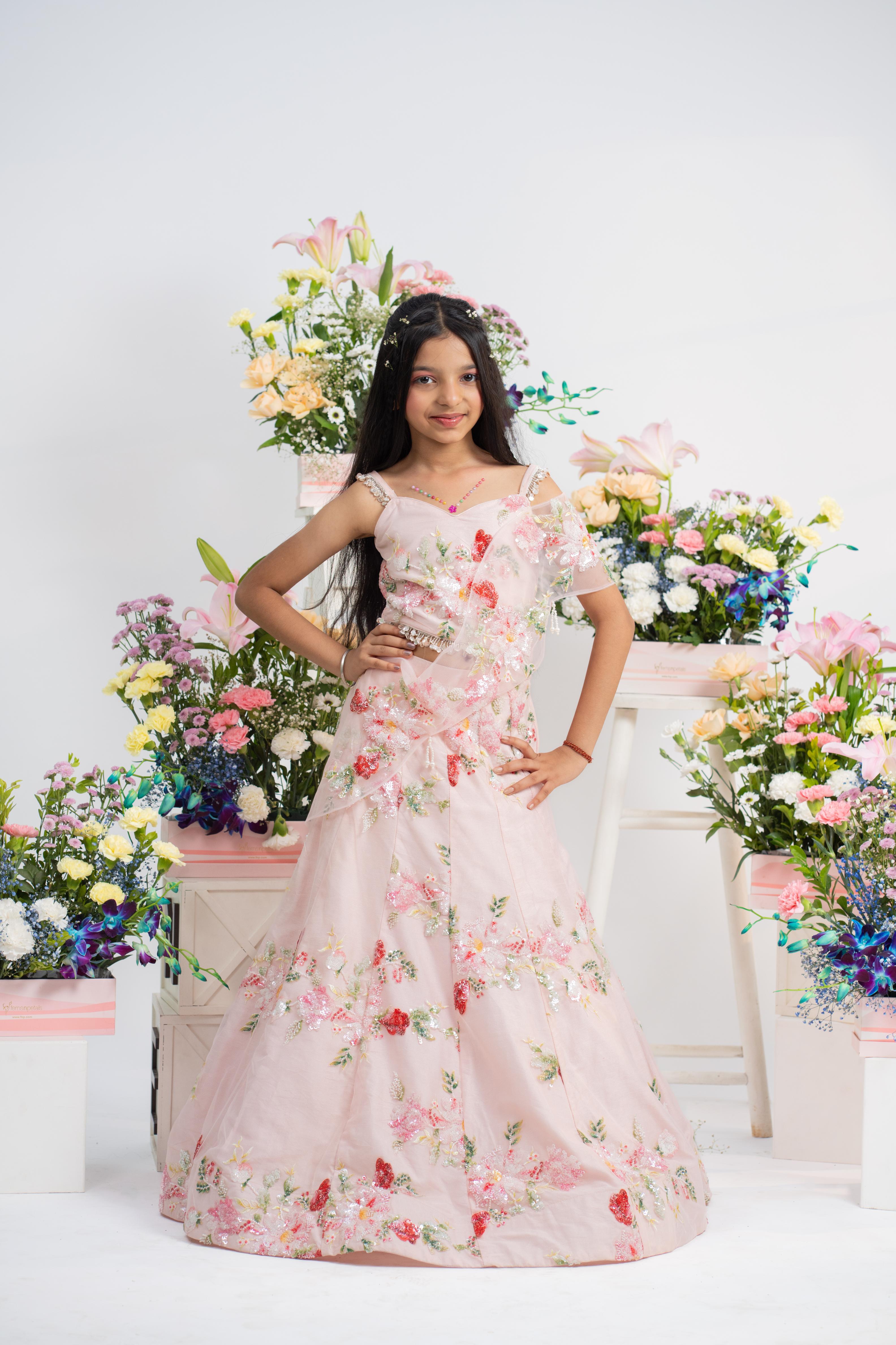 Matching blush pink flared lehenga