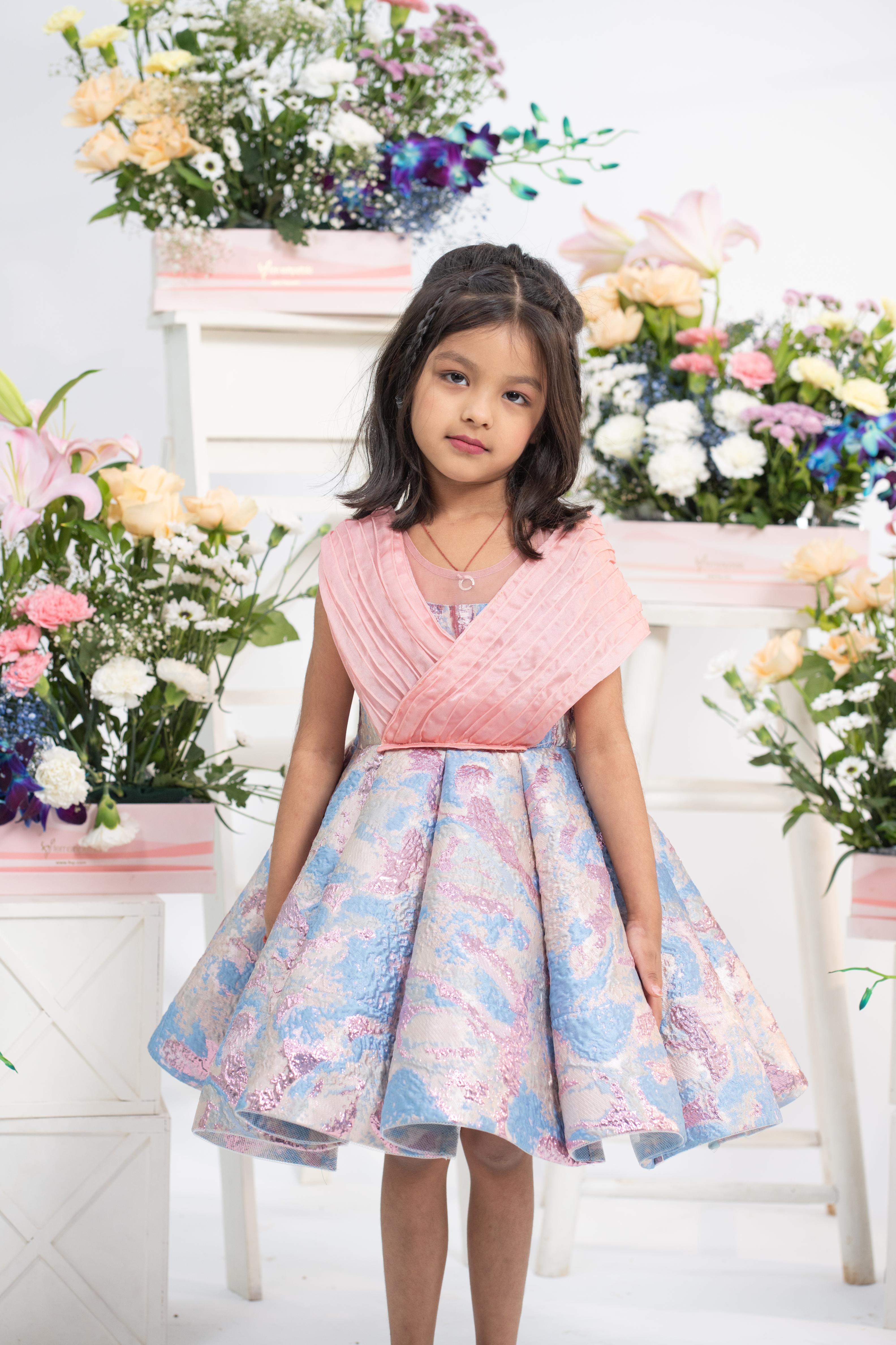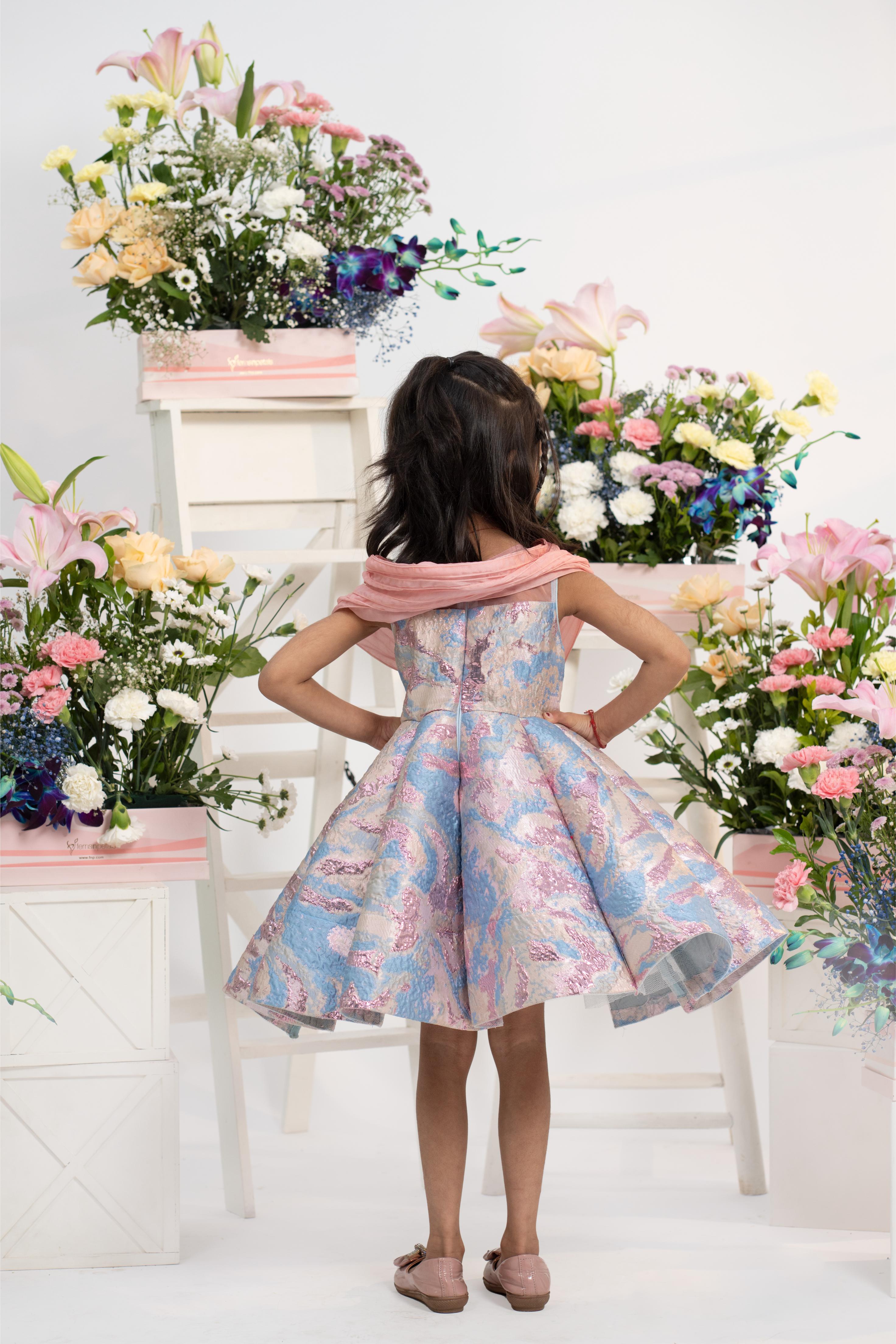 Structured flared skirt in pastel blue and pink jacquard