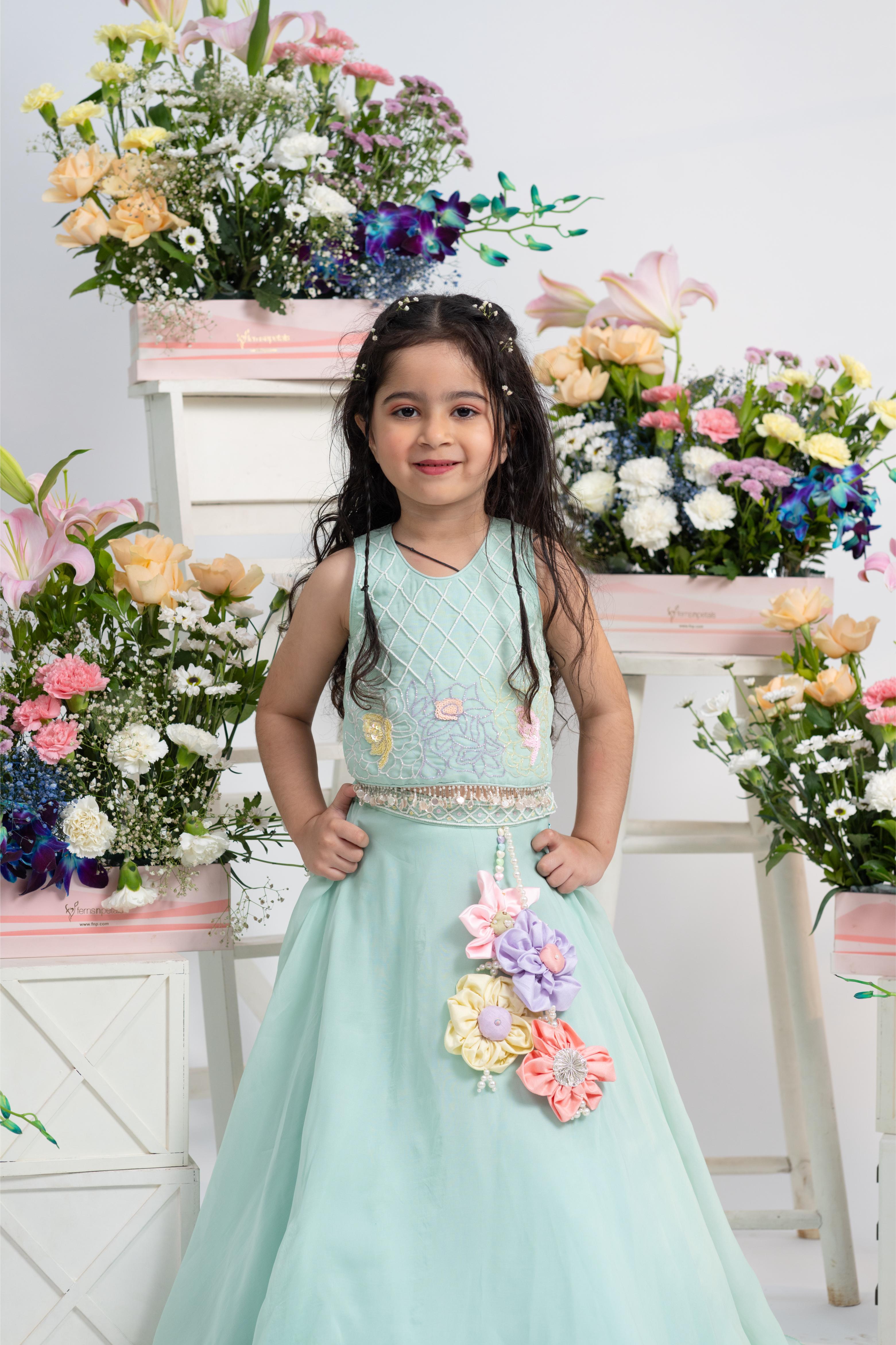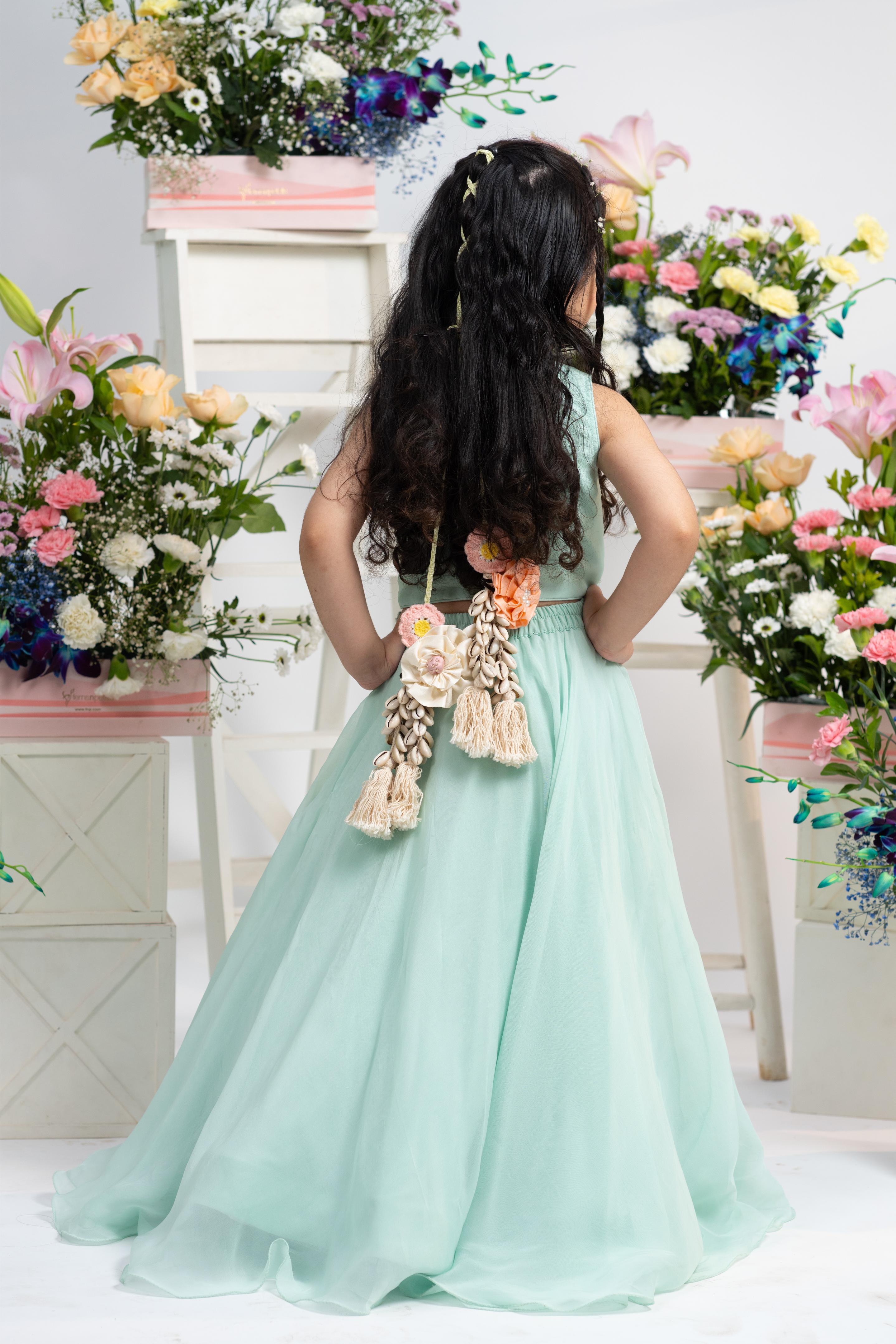 Flowing, full-flare lehenga in matching mint hue