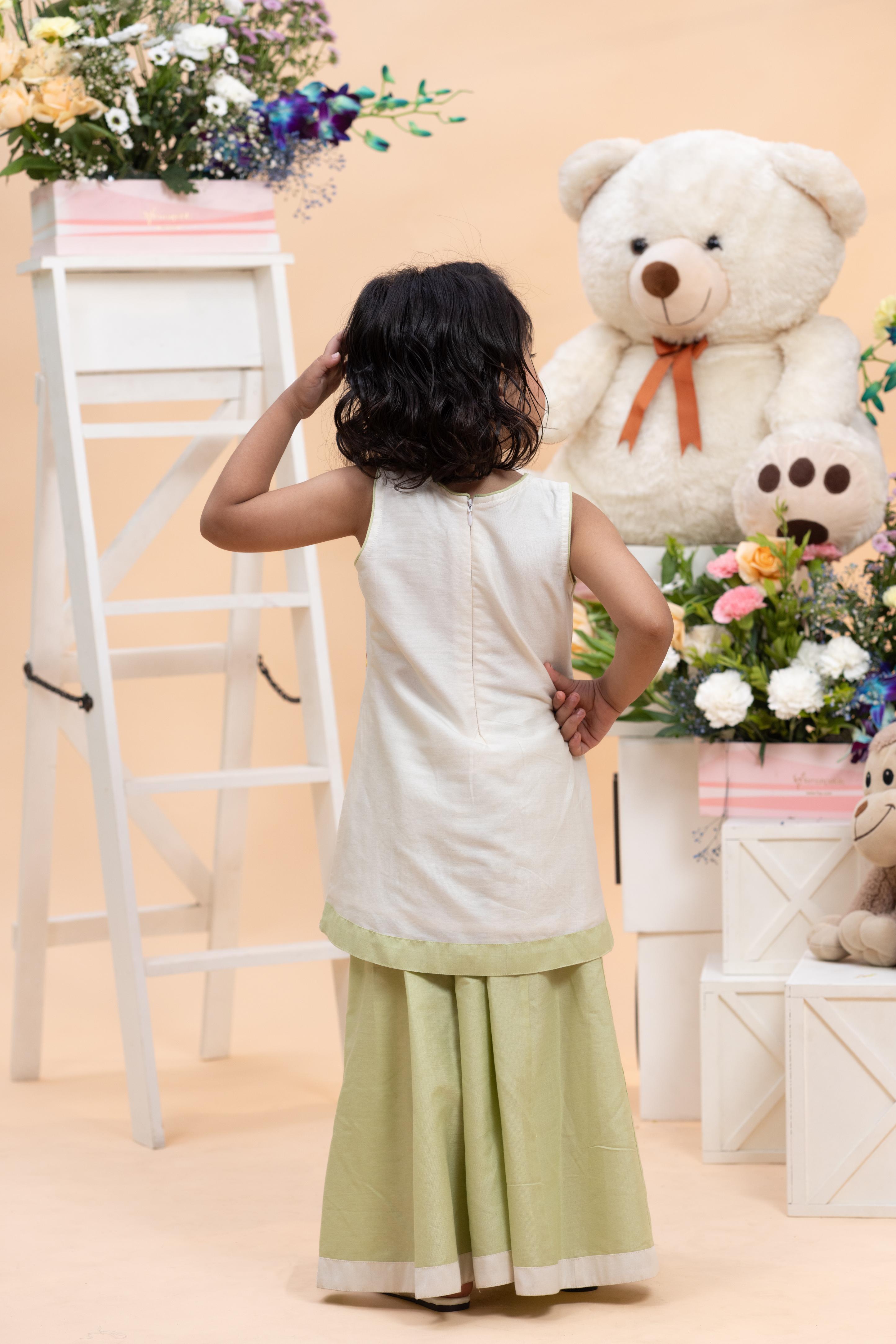 Soft pastel ivory sleeveless kurti