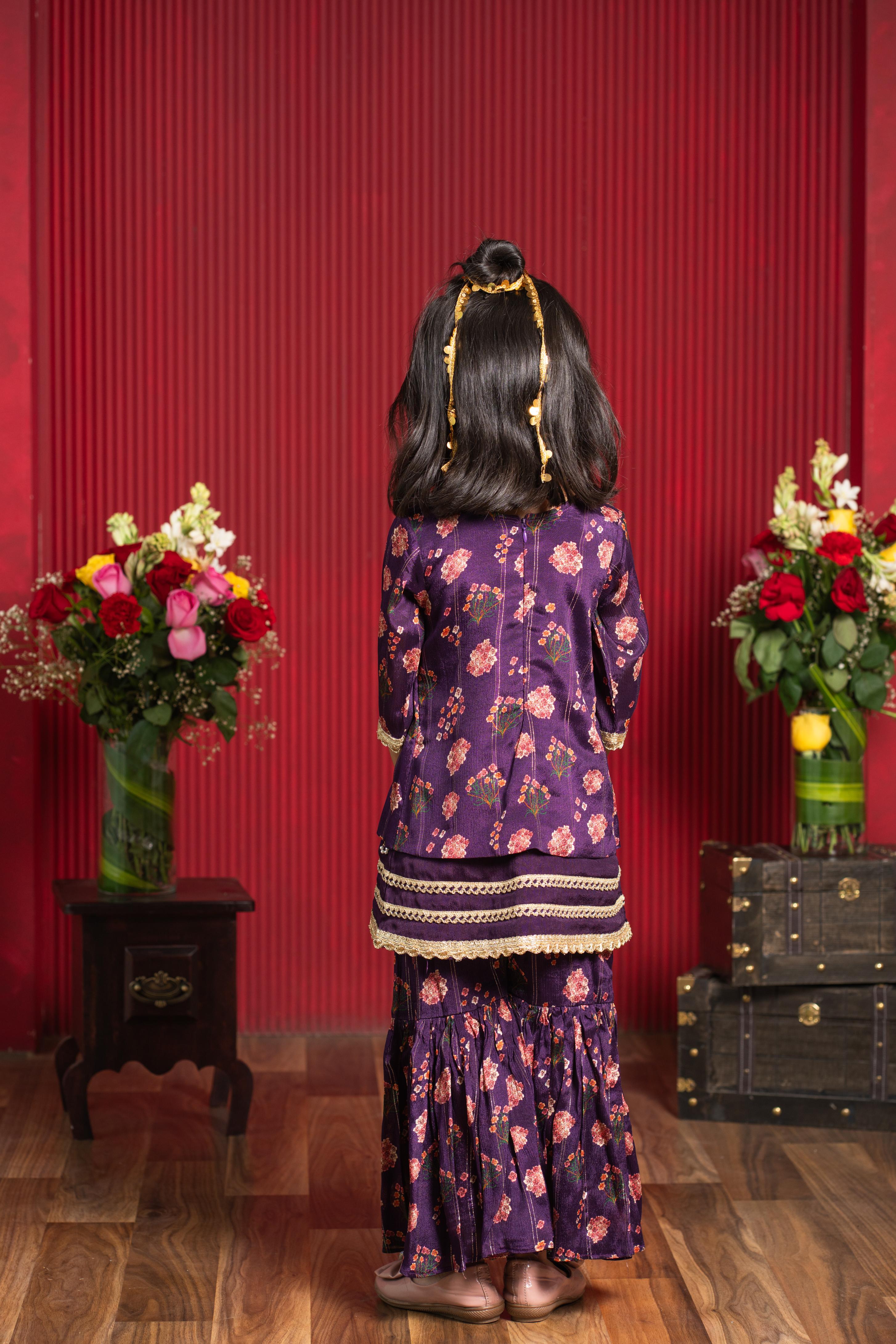 Matching plum floral sharara